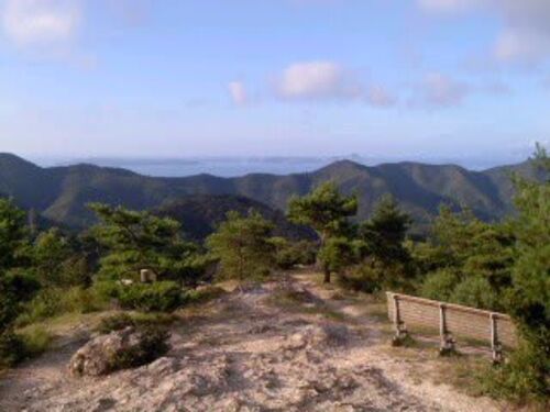 今朝は晴れていて登り始めはいつもより気温、湿度共に低く、快適ですが風はありません。頂上からは今日も霞んで見晴らしが悪いですね。